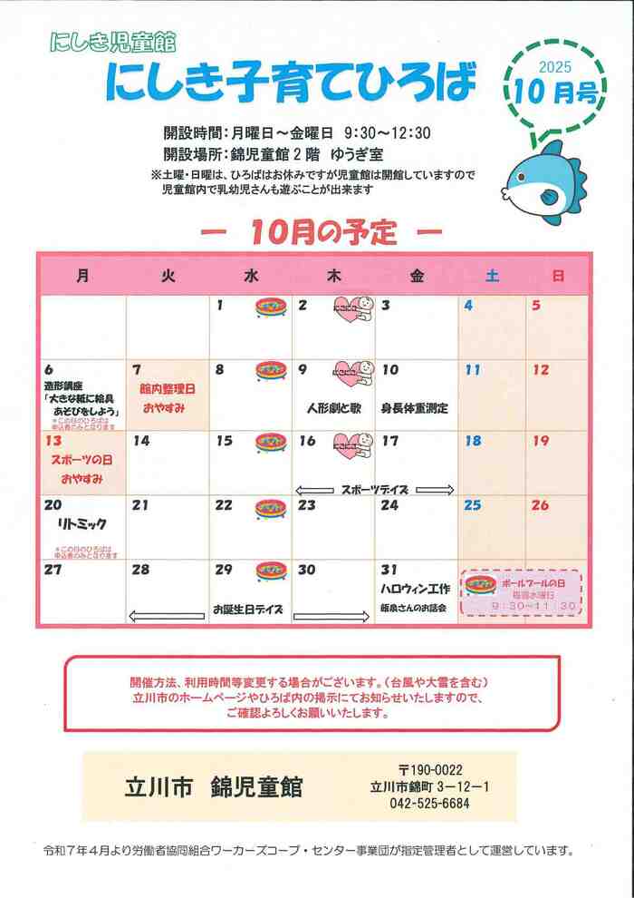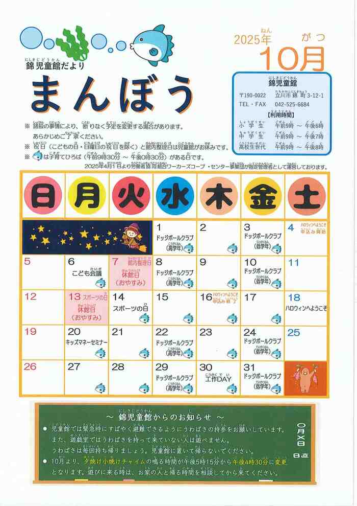 おたよりに掲載されている行事などの詳細については、錦児童館「きら たち」(指定管理者「(労組)ワーカーズコープ・センター事業団」サイト)をご覧ください。
