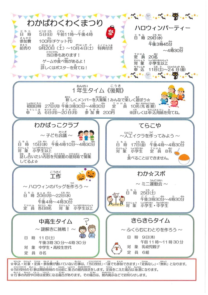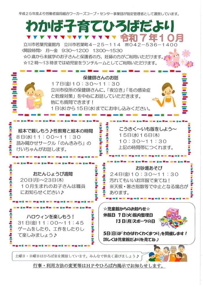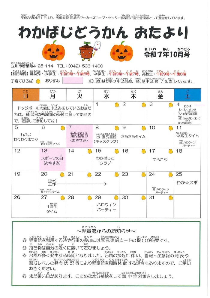 おたよりに掲載されている行事などの詳細については、若葉児童館「きら たち」(指定管理者「(労組)ワーカーズコープ・センター事業団」サイト)をご覧ください。