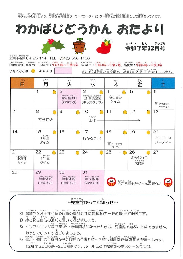 若葉児童館12月のおたより