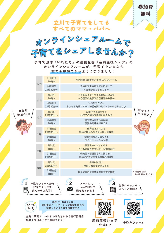 *10月以降は、登録していない方もオンラインシェアルームに参加できます。(各回申し込み制)- 申込み